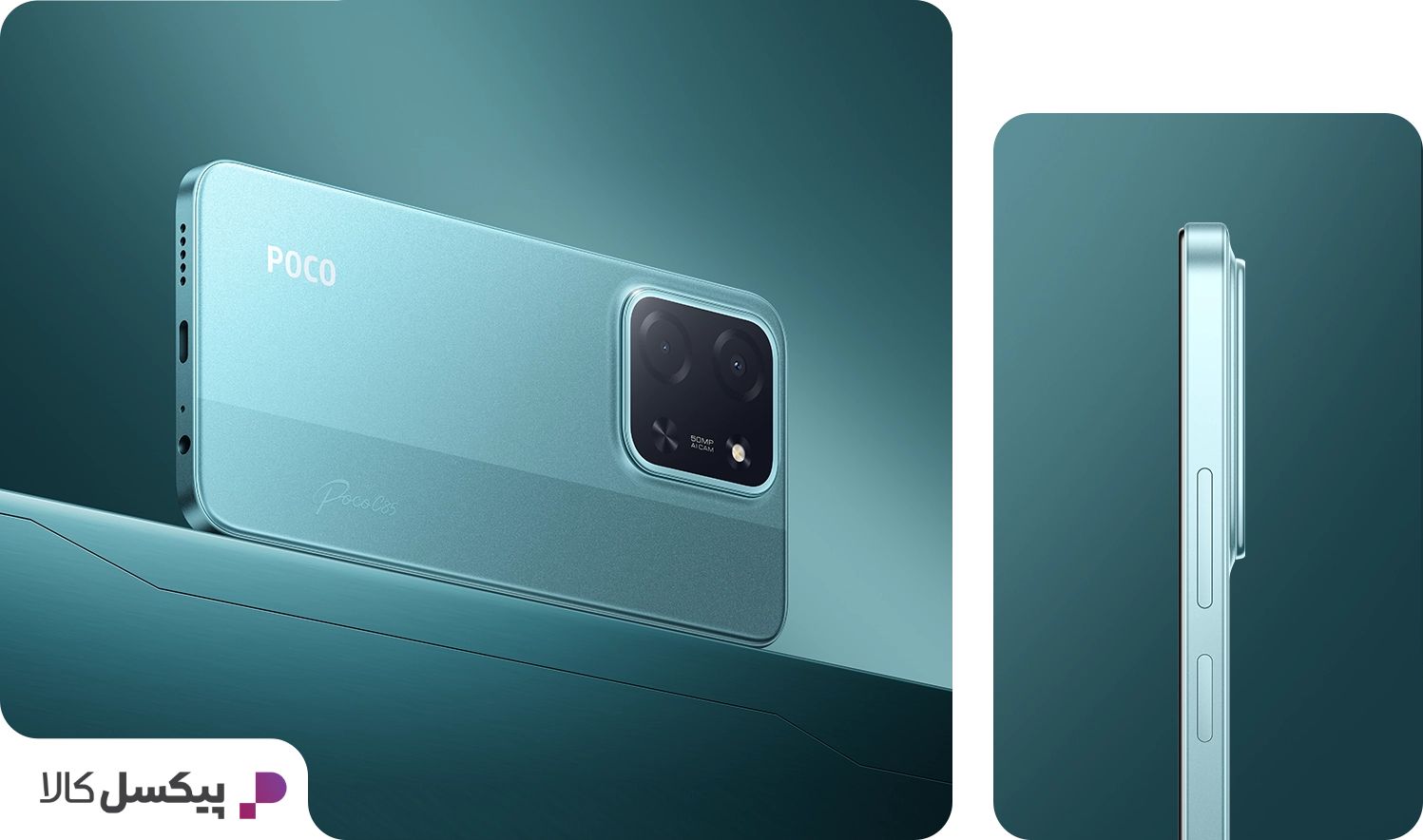 POCO C85 طراحی بزرگی دارد: نمایشگر ۶.۹ اینچی، ابعاد حدود ۱۷۱.۵ × ۷۹.۵ × ۸ میلیمتر و وزنی حدود ۲۰۵ گرم . ضخامت تقریباً ۷.۹۹ میلیمتر است که برای تلفنی با باتری ۶۰۰۰ میلیآمپر قابل قبول است .
